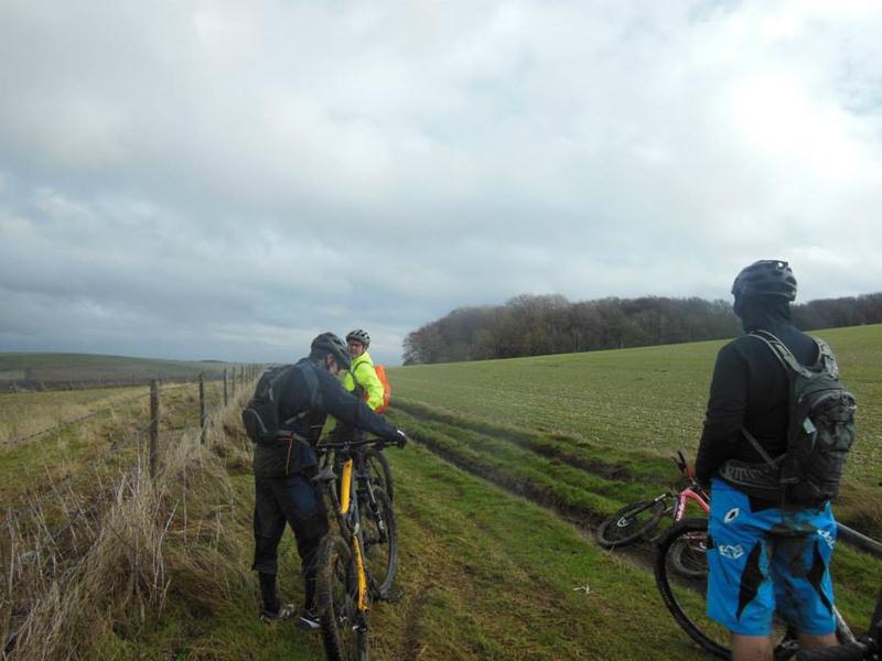 This took us to the final section of the ride, a long steady climb back up to Barbury past Four Mile Clump. We almost made it through the whole 21 miles without a mechanical failure. With our goal in sight (the other) Richard suffered a truly specular puncture riding through a puddle. A loud bang was followed by an inch long hole in his inner tube and an instant flat. Inner tube replaced we all returned to Barbury to end a muddy fun ride.