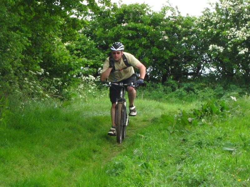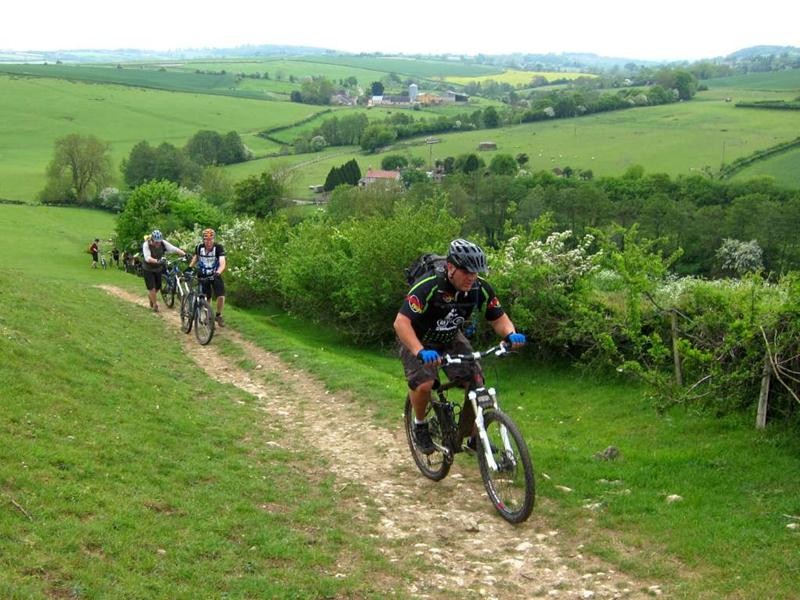 Another good climb through a field and past an ancient long barrow saw John get the day’s fifth puncture. This gave the rest of us an opportunity to munch jaffa cakes and jelly beans. Yet another fun, rocky descent and we were nearly finished.