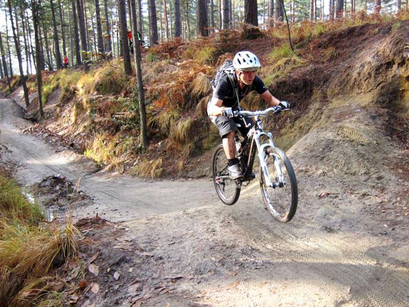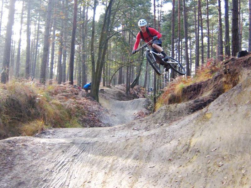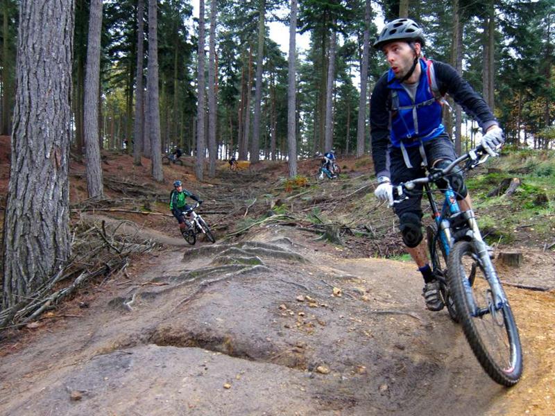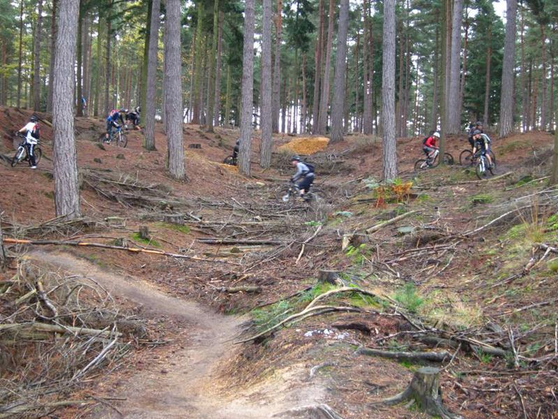 Swinley Forest is a great mountain biking area near Bracknell. This was the location for our second ever club ride back in April 2010. Local guide (Steve Dunn) took us on a 20 mile ride that took a lot of the good stuff. He’s a member of Berks on Bikes (I think). We had 18 riders at the start though we lost one due to a broken carbon fibre bike. He had to walk back to the start. This was one of the most involving and fun rides. We can see why Alan rates the location so highly now. MapsFull map: OS | Bing | Map my ride | GPX |