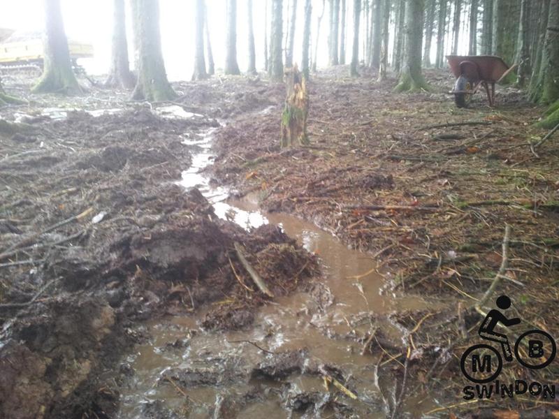 The woods are about 300m long, 10m wide and have a vertical drop of 25m, giving an average gradient of 1 in 10. The access track runs up the side of the woods so it’s ideal for a skills loop.