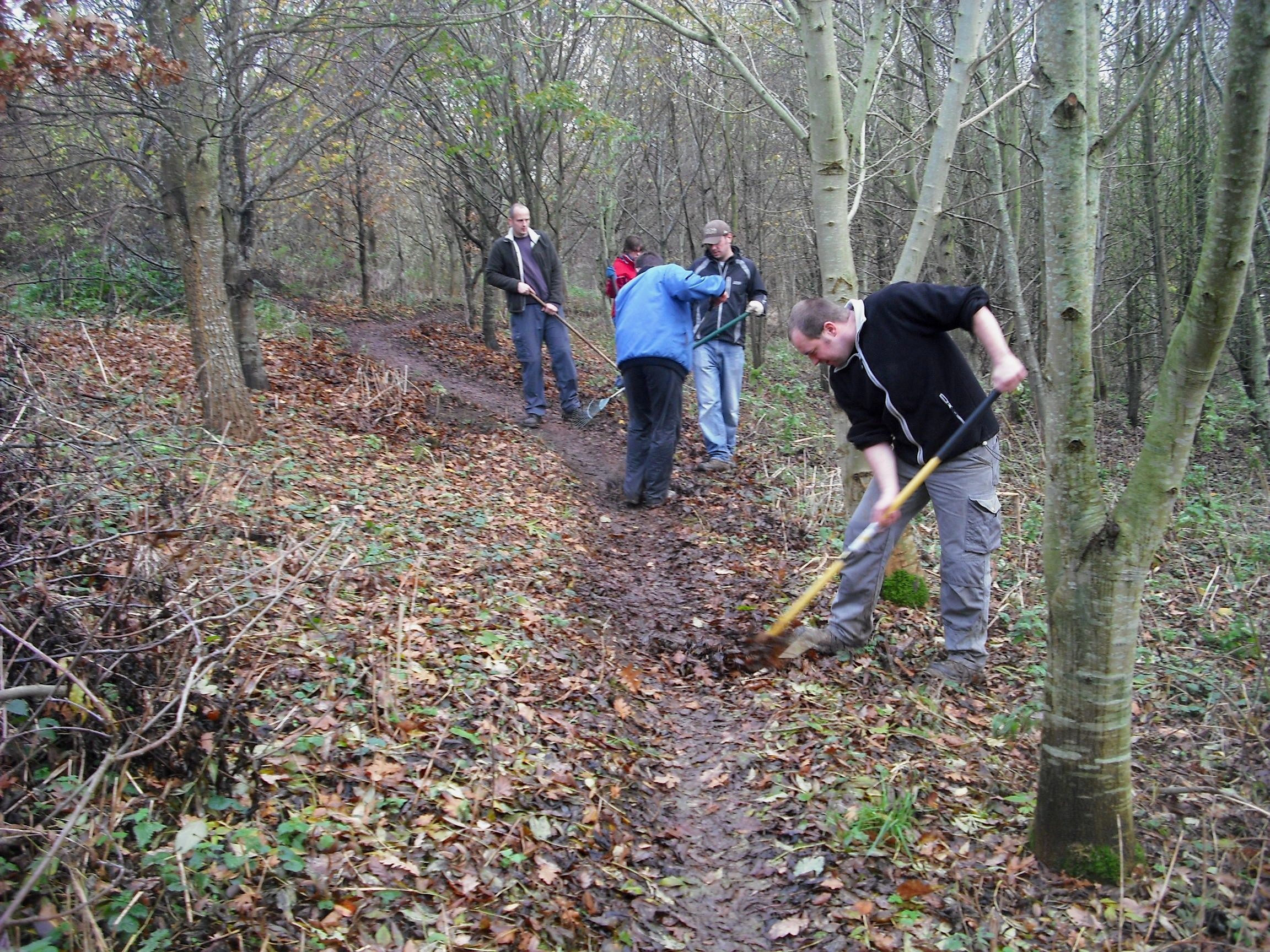 A party of 6 spent around 5 hours raking leaves off the trail. This was pretty heavy going. In many sections the leaves had been compressed into a soggy mulch. By the end of the day most of the trail was clear though.