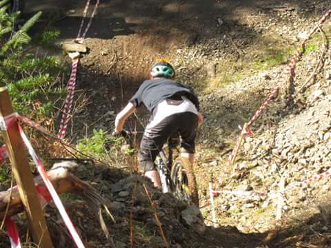 Stage 4 was based on the black trail centre descent with a nice hand cut section towards the end. So (thankfully!) some surfaced trails, manmade jumps and rollers and surprisingly difficult flat corners at the bottom .Stage 5 was the red trail centre descent, fast, flat out sections, plenty of pedalling and again with a nice variation at the end.