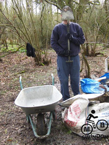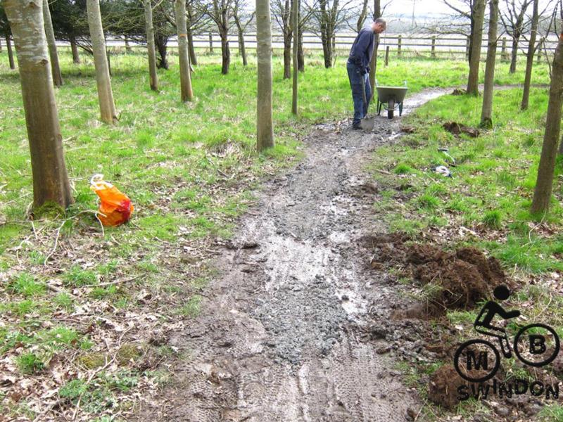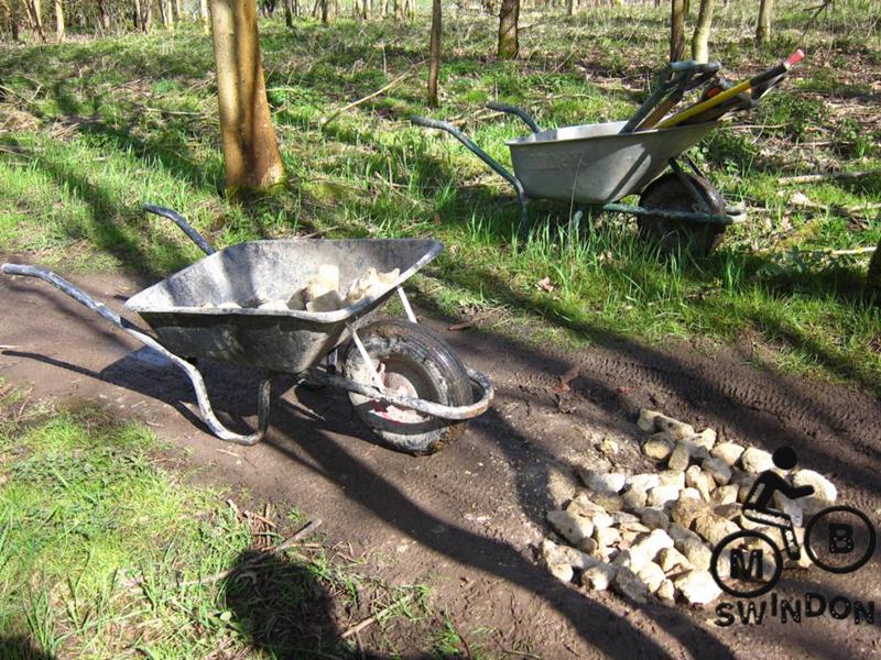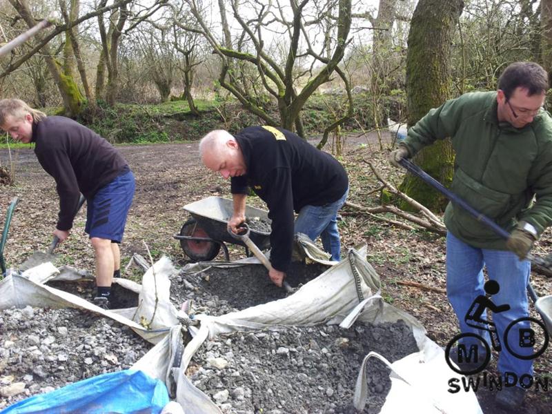 After a bit of warm rain on Saturday it was promising to have a dry and sunny morning. Arriving just after 10am I found Stewart Mackay, Paul Kidd, Finlay Kidd and Wayne Brown ready and raring to go. We got stuck straight into the first task for the day: fixing a load of potholes in an area we call “motorway1” and “motorway2”.