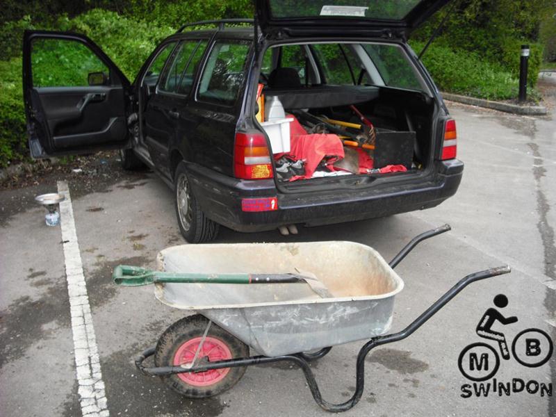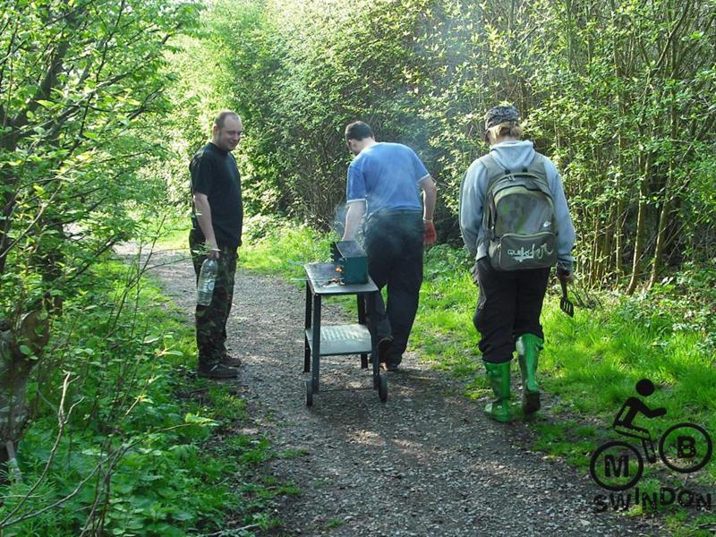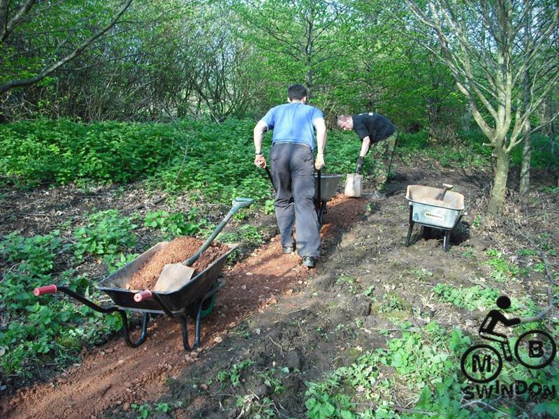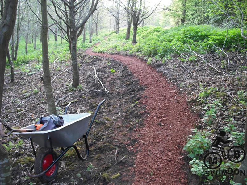 I’ve just got back from an absolute epic day. I was on my own for the first few hours and after a slow start I must have shifted around 25 loads of gravel on my own, giving about 60m of trail. Then Alan turned up, followed a bit later by Phil. The three of us made massive progress surfacing the North side trail. Alan’s wife then turned up with loads of food and cranked up the bbq. This was followed a bit later by cider and ice creams. We worked late in the evening, sufacing the new roller coaster berm too. Finally Phil and myself tipped some gravel on the entrance to the North side.