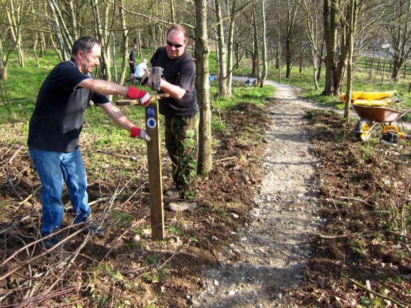 Jez and Kristian walked the trail lopping back any problem branches. Meanwhile Phil, Gary Palmer, Jason, Richard (not Barnett), Dave and myself (Tom) moved to the triangle to collect some sign posts. Whilst there we moved all the wooden off cuts from the new boardwalk into once central pile. Any stray storage bags, bits of drainage pipe and wooden markers were also rounded up. Dave did a bit of dusting (adding fine limestone surface to the trail, not cleaning it with a feather).