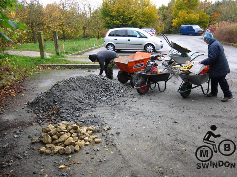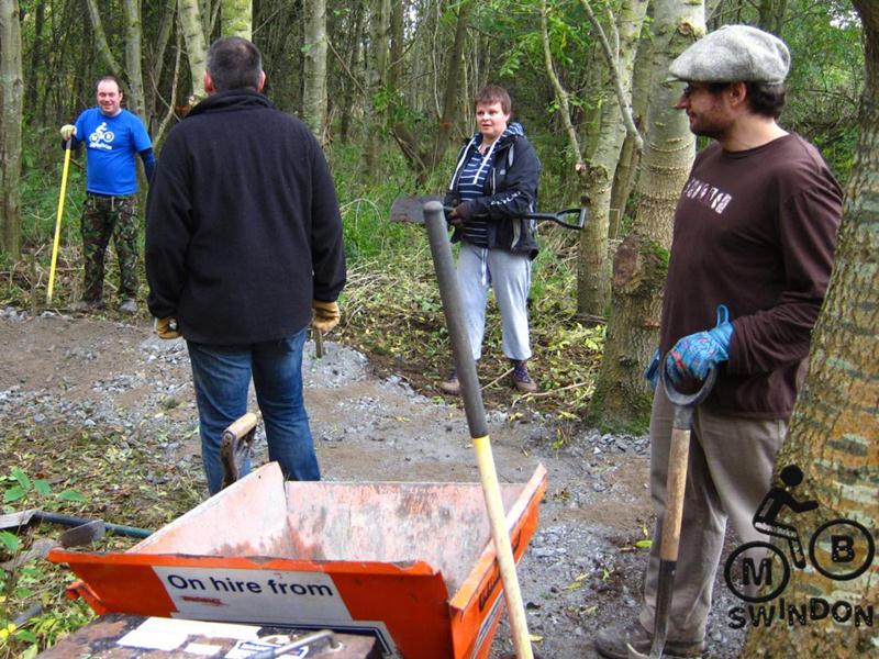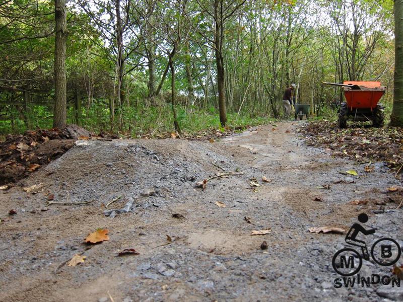 More trail building at Swindon.We sorted the short section on Piper’s hill. Attention then moved to compacting and dusting the section that had been filled in on the previous day. A few bits of mud were moved around and a berm was reinforced.