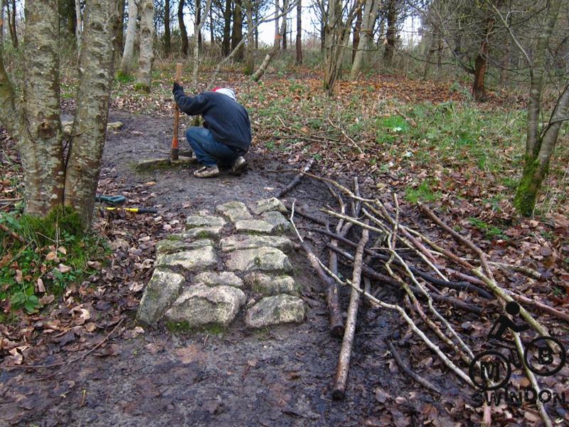 We raked a load of leaves off the trail and reset a rock jump on a section that we call motorway 1.