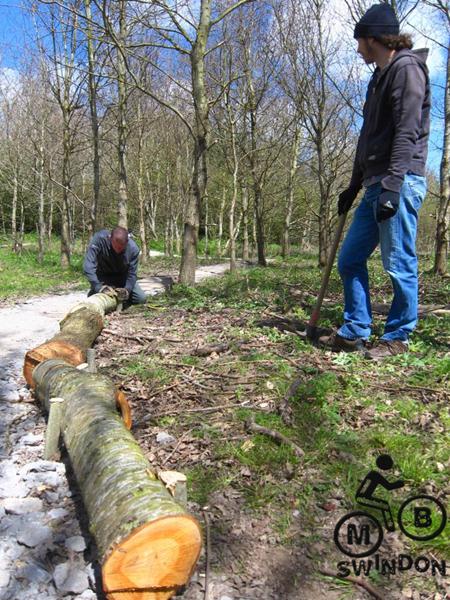 We then fixed a few corner cutting problems by pegging logs into the ground on the inside edge of the corners. This was mainly done in the section we call “motorway2”. A short cut was closed off next to the tennis courts with more logs. Finally we installed some logs on a corner on the east side of the pitch.