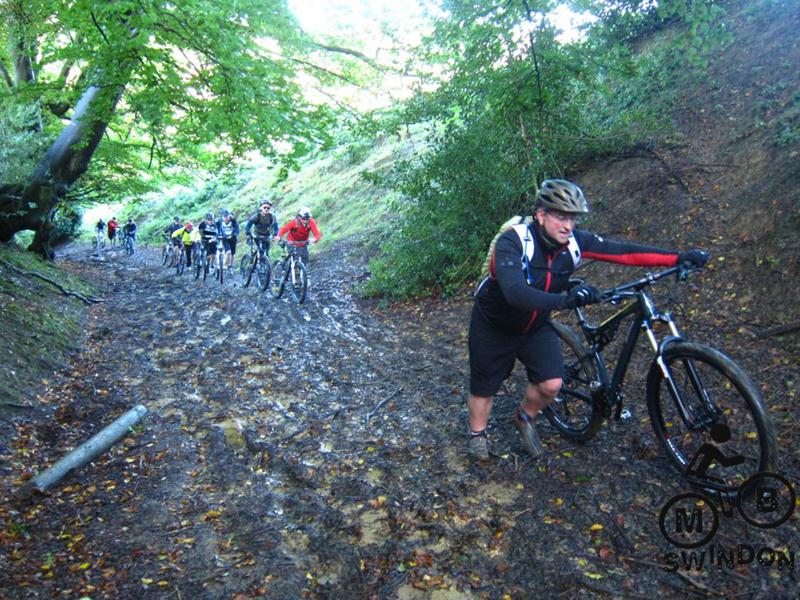 With 14 eager cyclist in the car park of the Crown Pub, if only they knew what was coming. It was smiles all round as we took off. I must make a note to myself not to start a ride at the top of the hill, it was great flying down hill through Uley. But then it was bang straight in to the first hill: a short section of road and then on to the bridle way. Guess what. That was uphill as well with a good helping of mud to up the challenge.