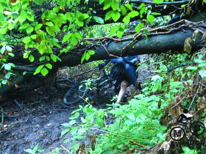 The forestry guys had been working in this section and to say their housekeeping was a bit slack was an understatement. Half way up the next climb there was a tree across the track, it was too high to go over and nearly to low to go under. Not all was lost though – the mud made it nice and soft to crawl under.