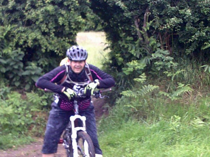 A short stretch of road and we were into the Wyre Forest and at the top of the Secret Garden run (made famous by a total of 10 punctures on the last MBS visit!). Surprisingly conditions were not too bad considering the number of heavy showers that have hit Worcestershire over the last few days. Dry in places under the trees; but a bit like a skid pan in others and with plenty of muddy holes to catch out the unwary. A slightly roundabout route took us back up to the Visitor Centre and then down The Far Side, a first for MBS riders. We then followed a slightly devious route over to Button Oak and back where Mark Bonnes earned himself the nickname “Mr Rotavator” for his spectacular efforts in a particularly muddy hole. Camber was next up and is well known to MBS although it is now quite well worn and the small bridge at the halfway point has gone. Good fun though and the actual Camber section still demands respect. A short and steep climb followed before Caravan took us all the way along the edge of the Dowles Brook valley, in my opinion some of the best riding in the Forest. This section finishes down a steep drop (Dog Kennel) with numerous options. We chose the easiest line but I still managed a lie down in a dead tree near the bottom! On re-grouping what I thought to be mud on my glasses turned out to be a live slug. Another devious route back out of the Forest, a short road ride and we were back at the campsite, muddy and damp.