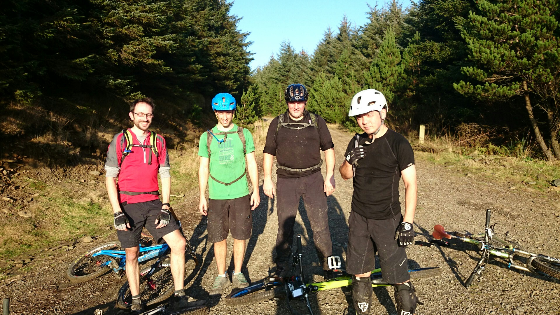 Rich and Sean had decided they’d ridden enough for the day and Paul’s injury meant an early shower for him so five of us set off up the climb again to ride Blade. I’d ridden Blade earlier in the year but it seemed I missed out a whole section, as it happened it turned out to be some of the most fun trail I’ve ridden in a long time and once again there was much whooping and a hollering! The last time I rode Blade it had only just opened and was a muddy, mushy mess. After having almost a year to settle down it’s become a great trail and a superb addition to Afan. If you’re heading down there anytime soon I recommend you give it a bash.
