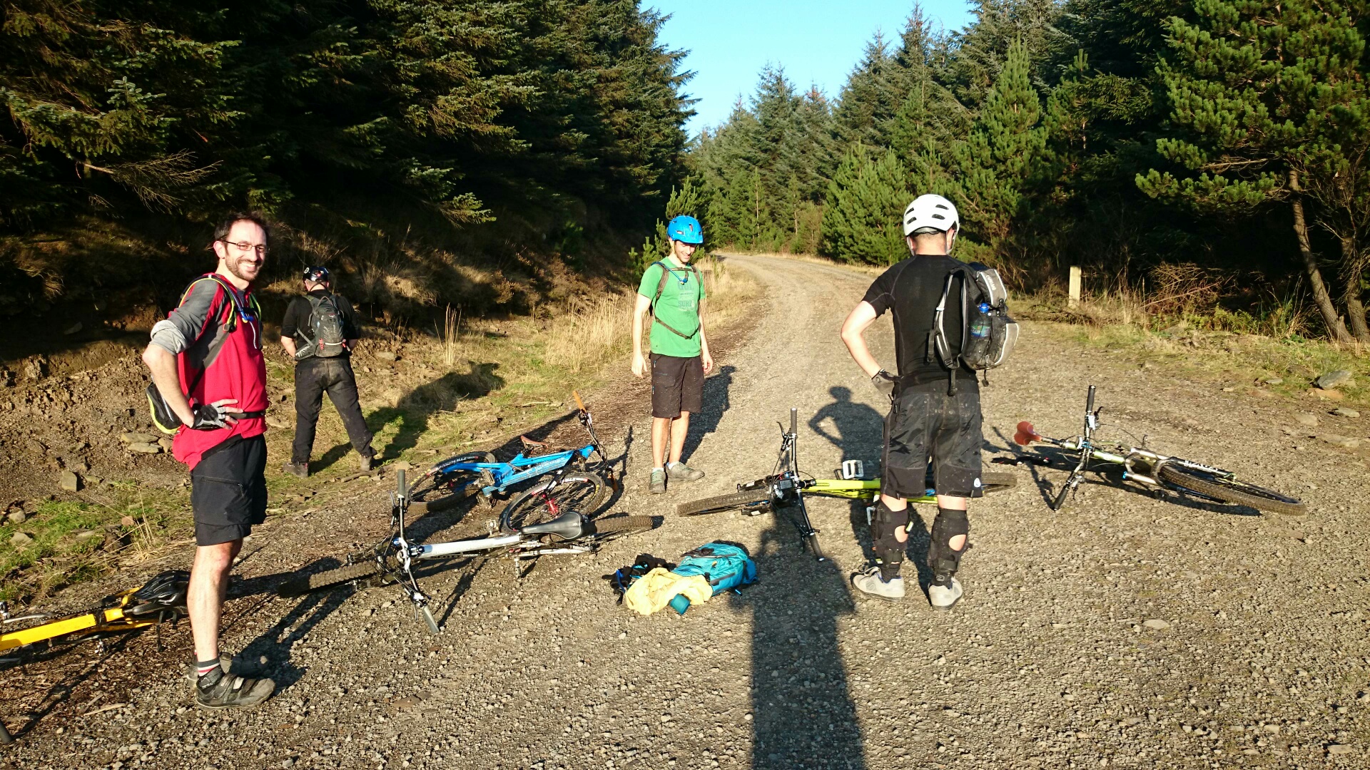 With time against us we opted to take the shortcut down an old section of Skyline which spat us out onto the final descent of Blade. It’s quite a challenging descent which saw me make a wrong line choice on a rutted out turn which put me on my backside. Then, literally fifty metres from the end, a lapse of concentration had me doing my best superman impression and ending up a little dazed and confused lying upside down on the side of the mountain. With no more than a few physical bruises and a few more mental ones I and the others rode back to the car park. We all agreed that it had been a thoroughly enjoyable days riding made even better by the most unseasonal weather and something we should do again very soon. Massive thanks to Alan, Rich, Graham, Gary, Paul, Sean and Phil for helping to make it such a fun day out.